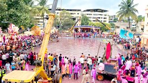 बेळगाव : उत्साही वातावरणात बेळगावच्या सार्वजनिक गणेशोत्सव मंडळांची शनिवार दि. 6 रोजी सायंकाळी 6 वाजता सुरू झालेली श्री विसर्जन मिरवणूक रविवार दि. 7 रोजी रात्री उशिरापर्यंत 24 तासांहून अधिककाळ सुरूच होती. रविवारी रात्री 8 पर्यंत कपिलेश्वर नवीन तलावात 132 श्री मूर्ती, जुन्या कपिलेश्वर तलावात 50 श्रीमूर्तींचे विसर्जन करण्यात आले होते. तर जक्कीन होंड तलावात 50 श्री मूर्तींचे विसर्जन झाले. शहरातील वाढलेल्या सार्वजनिक गणेशोत्सव मंडळांची संख्या व काही मंडळांनी विसर्जन मिरवणूक उशिरा सुरू केल्याने विसर्जनावर याचा परिणाम झाला. शनिवारी दुपारी 4 वाजता माळी गल्ली येथील सार्वजिनक गणेश मूर्तीचे सर्वप्रथम नवीन कपिलेश्वर तलावात विसर्जन करण्यात आले.