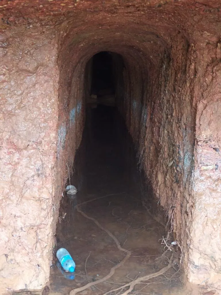 धबधबा येथील श्री तळेश्वर गोठणेश्वर मंदिराच्या परिसरात गंगा बारच्या समोर व सुनील गोवेकर यांच्या घरामागे अशा दोन ठिकाणी हि भुयारे आहेत. पूर्वी या भुयारांमध्ये स्थानिक लोक टॉर्च घेऊन फिरतही होते. खनिज माल काढण्यापूर्वी या भागातून मेंगनिज काढले जायचे. त्याची पडताळणी करण्यासाठी अशा प्रकारची लांबच्या लांब भुयारे मारून भुगर्भातील मेंगनिज शोधले जात होते. जर सदर ठिकाणी मेंगनिज मिळाल्यास ते काढण्यासाठी पुढील प्रक्रिया हाती घेतली जायची. अन्यथा सदर भुयारे तशीच सोडून दिली जायची. अशाच प्रकारची दोन भुयारे सध्या धबधबा येथे आहेत. या भुयारांमध्ये मेंगनिज ऐवजी शेड मातीच मिळाल्याने ती तशीच सोडण्यात आली आहेत.