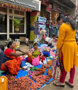 दिवाळी चार दिवसांवर : पावसाने उसंत घेतल्याने खरेदीची लगबग : कुंदन वर्क केलेल्या पणत्या-दिव्यांना पसंती