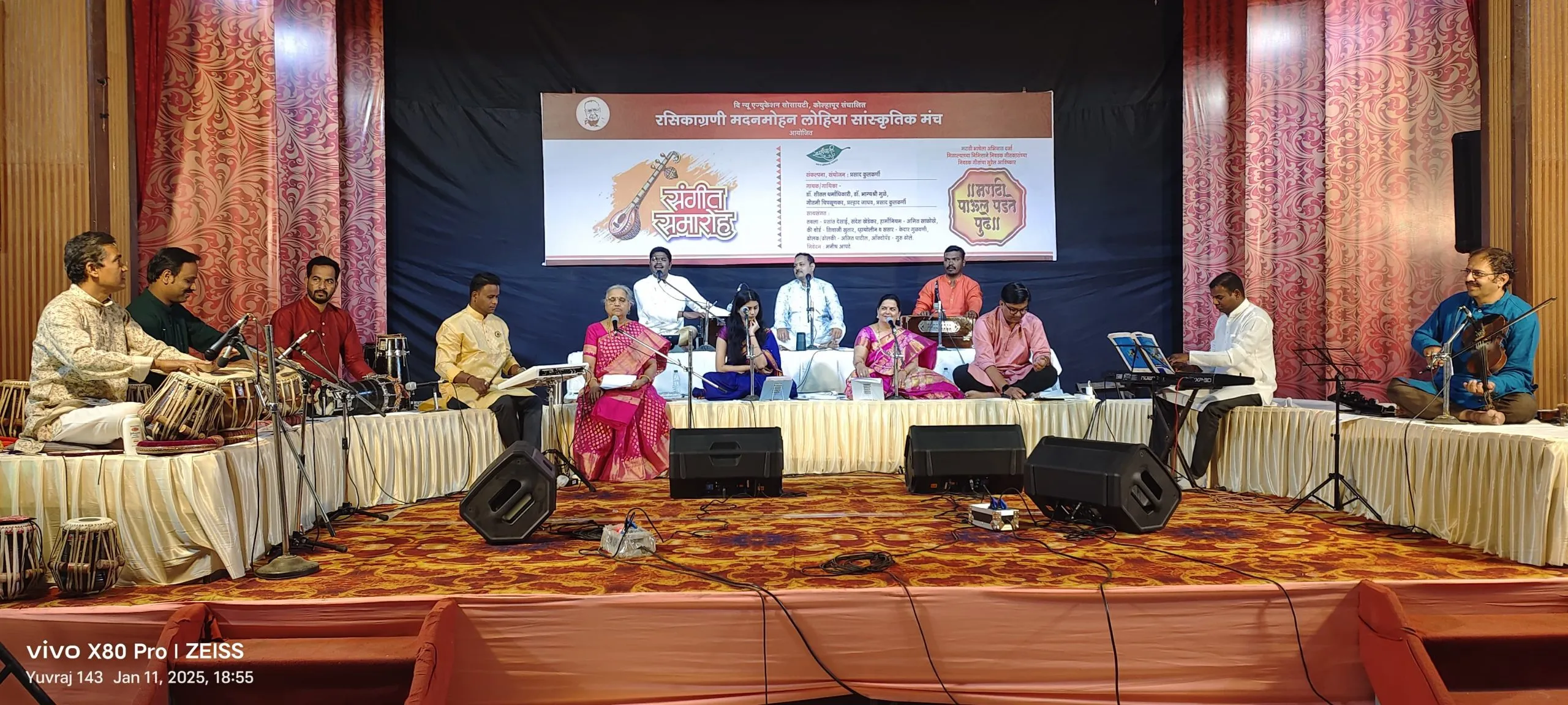 गायकांनी गीतकार सुरेश भट, मंगेश पाडगावकर, बाल कवी, प्र. के अत्रे, ना .धो महानोर, गदिमा, कुसुमाग्रज, शांता शेळके, जगदीश खेबुडकर, संत एकनाथ आदी गीतकारांच्या आठवणींना उजाळा देण्यात आला. तबला प्रशांत देसाई व संदेश खेडेकर, हार्मोनियम अमित साळोखे, की बोर्ड शिवाजी सतार, व्हायोलिन व सतार केदार गुळवणी, ढोलक व ढोलकी अजित पाटील, ऑक्टो पॅड गुरु ढोले यांनी साथसंगत केली. मनीष आपटे यांनी निवेदन केले. यावेळी संस्थेचे सल्लागार व मंचाचे अध्यक्ष विनोदकुमार लोहिया, अनिल लोहिया, नितीन वाडीकर, सचिव प्राचार्य प्रभाकर हेरवाडे, सहसचिव प्राचार्य एस .एस. चव्हाण, प्रा. सतीश कुलकर्णी, प्रा. गोविंद पैठणे आदी उपस्थित होते.