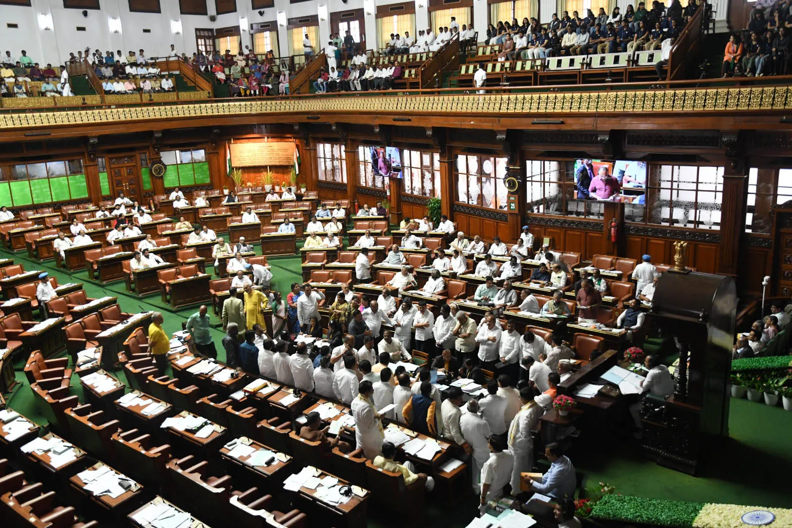न्यायालयीन चौकशी सुरू असताना सभागृहात चर्चा करणे नियमाला अनुसरून नाही. चर्चेला मुभा देऊ नका, अशी विनंती सभाध्यक्षांना केली. यावेळी सत्ताधारी काँग्रेस आणि विरोधी पक्ष भाजप-निजदच्या आमदारांमध्ये शाब्दिक चकमक झाली. त्यामुळे गदारोळ माजल्याने सभाध्यक्ष यु. टी. खादर यांनी कामकाज 10 मिनिटे लांबणीवर टाकले. अर्ध्या तासानंतर पुन्हा कामकाज सुरू होताच विरोधी आमदारांनी धरणे सुरू केले. सभाध्यक्षांनी त्यांना आंदोलन मागे घेऊन चर्चेत सहभागी होण्याची विनंती केली. मात्र, त्याकडे भाजप-निजद आमदारांनी दुर्लक्ष करत मुडा गैरव्यवहाराशी संबंधित फलक प्रदर्शित केले. यामुळे सत्ताधारी आणि विरोधी आमदारांमध्ये आरोप-प्रत्यारोप झाले.