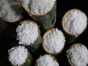या मिठाला बांबूच्या सिलिंडरमध्ये भरून नीलम बांबूचे मीठ तयार केले जाते. या प्रक्रियेकरता 50 दिवस लागतात. मिठाने भरलेल्या बांबूच्या सिलिंडरला अनेकदा उच्च तापमानावर गरम केले जाते, यामुळे बांबूचे गुणधर्म या मिठात सामावले जातात. याला कमीतकमी 9 वेळा 800 अंश सेल्सिअसपेक्षा अधिक तापमानावर गरम केले जाते. यामुळे मिठाला बांबूतून खनिजे मिळतात, तसेच याचा रंग अन् आकारही बदलतो. याकरता कुशल कारागिरांकडून संचालित विशेष भट्ट्यांची आवश्यकता असते. या पूर्ण प्रकियेला अत्यंत मेहनत आणि कालावधी लागतो, जो याचा उत्पादन खर्च वाढवितो.