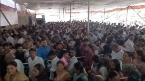 मंदिर प्रांगणात भाविकांच्या लांबच लांब रांगा