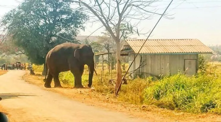 बेळगाव : कर्नाटक-महाराष्ट्र सीमाहद्दीवर आलेल्या चाळोबा गणेश नावाच्या हत्तीचा मुक्काम वाढला आहे. त्यामुळे वनखात्याची झोप उडाली आहे. शिवाय शेतकऱ्यांमध्ये धास्ती कायम आहे. तातडीने या हत्तीला हुसकावून लावावे, अशी मागणी परिसरातील शेतकऱ्यांनी केली आहे. डोंगर क्षेत्रातून बाहेर येताच त्याला हुसकावून लावण्यासाठी वनखाते तळ ठोकून आहेत. मात्र हत्ती डोंगराबाहेर येतो की अद्याप किती दिवस मुक्काम करतो याबाबत चिंता व्यक्त होऊ लागली आहे. मूळचा आजरा तालुक्याच्या जंगल क्षेत्रातील असलेला हा हत्ती बेळगाव, चंदगड, सीमेवर दाखल झाला आहे. सध्या उचगाव-कोवाड रस्त्यानजीक असलेल्या बेकिनकेरे डोंगरात स्थिरावला आहे. मात्र हा डोंगर कमी क्षेत्राचा असल्याने परिसरातील शेतकऱ्यांची धास्ती वाढली आहे. हत्ती कधीही बाहेर येऊन मानवी वसतीत शिरू शकतो. शिवाय डोंगर पायथ्याशी असलेल्या शिवारात धुमाकूळ घालू शकतो. त्यामुळे परिसरातील नागरिकांचीही झोप उडाली आहे. रविवारी सकाळपासून हा हत्ती सीमाहद्दीवरील छोट्याशा डोंगरात स्थिरावला आहे. सध्या डोंगरातील पाला आणि काजूच्या बोंडावर गुजराण करू लागला आहे. मात्र पाण्यासाठी त्याला बाहेर पडावे लागणार आहे. बाहेर पडताच वनकर्मचारी त्याला आजऱ्याच्या दिशेने हुसकावणार आहेत. मात्र सध्या परिसरातील शेतकऱ्यांनी सावध राहणे आवश्यक आहे.