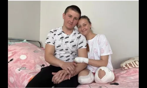 रशियाच्या हल्ल्यात गमावले दोन्ही पाय : प्रियकरासोबत रुग्णालयातच विवाहबद्ध
