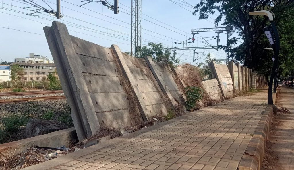 संरक्षक भिंत बांधताना निकृष्ट प्रतीचे साहित्य व दर्जाहीन बांधकाम असल्यामुळे काही महिन्यातच यातील प्लेट निखळून पडू लागल्या. या संरक्षक भिंतीच्या एका बाजूला काँग्रेस रोडवरील फुटपाथ तर दुसऱ्या बाजूला रेल्वेचा रूळ आहे. जर ही संरक्षक भिंत कोसळल्यास फुटपाथवरून चालणाऱ्या पादचाऱ्यांना अपघात होण्याची शक्यता आहे. तसेच रेल्वेलाही धोका निर्माण झाला आहे. त्यामुळे या ठिकाणी मजबूत भिंतीची उभारणी करण्याची मागणी होत आहे.