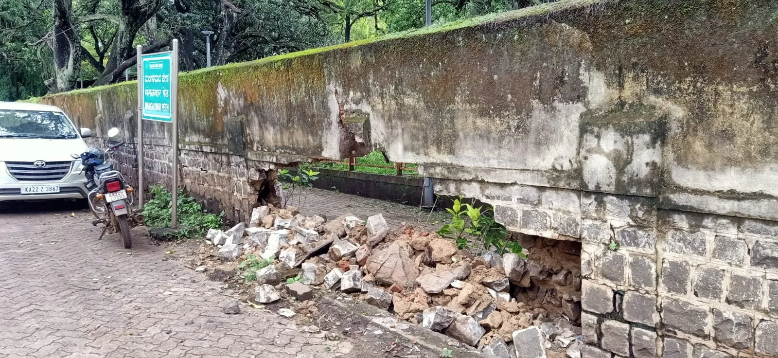 बेळगाव : लहान मुले, वृद्ध फिरण्यासाठी उद्यानाचा आधार घेत असतात.पालक आपल्या पाल्यांना मनोरंजनासाठी किंवा बागडण्यासाठी उद्यानामध्ये घेऊन जात असतात. मात्र याच उद्यानांची अवस्था गंभीर बनली आहे. संरक्षक भिंत कधी कोसळेल याचा नेम नाही. मंगळवार पेठ येथील उद्यानाची संरक्षक भिंत कोसळली असून धोकादायक बनली आहे. तेव्हा महानगरपालिकेने तातडीने दुरुस्ती करावी, अशी मागणी परिसरातील नागरिकांतून होत आहे. शहरामध्ये अनेक उद्याने असून त्यांच्या देखभालीचे काम महानगरपालिकेकडे आहे. दरवर्षी लाखो रुपये खर्च केले जातात. मात्र अनेक उद्यानांची सध्याची अवस्था पाहता खर्च केलेला निधी वाया जात असल्याचे दिसून येत आहे. उद्यानांना संरक्षक भिंत बांधण्यात आल्या आहेत. मात्र त्या भिंती जीर्ण झाल्या आहेत. मंगळवार पेठ येथील सायन्स पार्क म्हणूनही या उद्यानाकडे पाहिले जाते. मात्र या उद्यानाची भिंत धोकादायक बनली आहे. तेव्हा महानगरपालिकेने याकडे लक्ष द्यावे, अशी मागणी जोर धरत आहे.