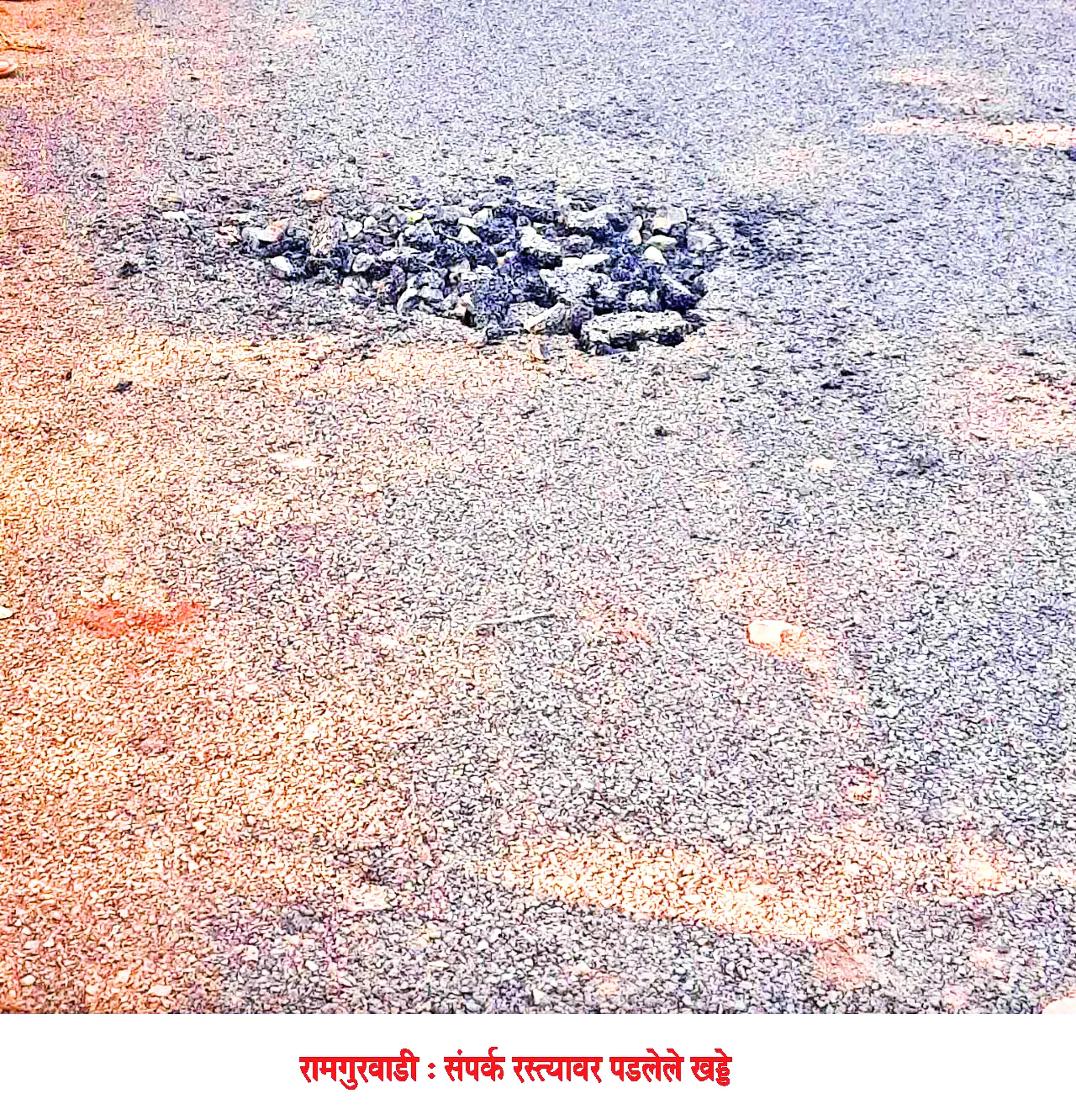 मुख्यमंत्री ग्राम सडक योजनेंतर्गत तालुक्यातील सहा संपर्क रस्त्यांचे नुकतेच डांबरीकरण केले आहे. रामगुरवाडी गावचा संपर्क रस्ताही या योजनेतून नव्याने करण्यात आला होता. 19 मार्च रोजी हे काम पूर्ण करण्यात आले. अवघ्या एक महिन्यात रस्त्यावर खड्डे पडण्यास सुरुवात झाली आहे. यावरून या रस्त्याच्या कामाचा दर्जा स्पष्ट होतो. खानापूर-जांबोटी रस्त्यापासून रामगुरवाडी शाळेपर्यंत 830 मीटरचा हा रस्ता खडीकरण व डांबरीकरण करण्याचा आराखडा होता. या कामासाठी मुख्यमंत्री ग्राम सडक योजनेतून 20 लाख रु. चा निधी मंजूर झाला होता.