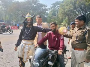 झारखंड राज्याच्या जमशेदपूर शहरात वाहतूक प्रशासन लोकांना वाहतुकीचे नियम शिकविण्यासाठी आणि लोकांचे प्रबोधन करण्यासाठी एक अनोखा प्रयोग करत आहे. विशेषत: दुचाकी चालविणाऱ्यांनी शिरस्त्राण, अर्थात, हेल्मेट परिधान करणे किती आवश्यक आहे, हे समजावण्यासाठी प्रत्यक्ष ‘यमराजां’नाच पाचारण करण्यात आले आहे. हे यमराज भर मार्गात लोकांना हेल्मेटसंबंधी जागरुक करत असतात. ‘अगर हेल्मेट नही पहनोगे, तो तुम्हे मै आपने साथ ले जाऊंगा’ असा स्पष्ट इशारा हे यमराज हेल्मेट नसलेल्या दुचाकीस्वारांना देताना दिसतात.