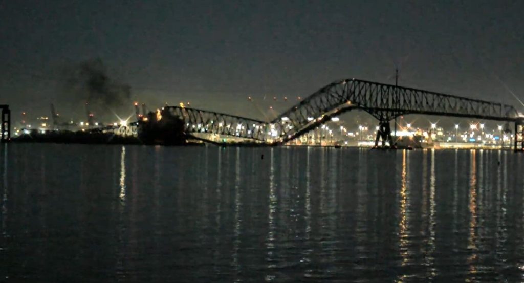 अमेरिकेच्या बाल्टीमोर येथे सर्वात लांब फ्रान्सिस स्कॉट ब्रिज मंगळवारी सकाळी एक मोठे मालवाहू जहाज आदळल्याने पाण्यात कोसळले आहे. पूल कोसळण्यापूर्वी त्यावर आग लागली आणि अनेक वाहने पाण्यात कोसळल्याचे समजते. श्रीलंकेच्या दिशेने प्रवास करत असलेल्या संबंधित जहाजावर 22 भारतीय होते आणि या दुर्घटनेत त्यांना कुठलीच ईजा झाली नसल्याचे समोर आले आहे.