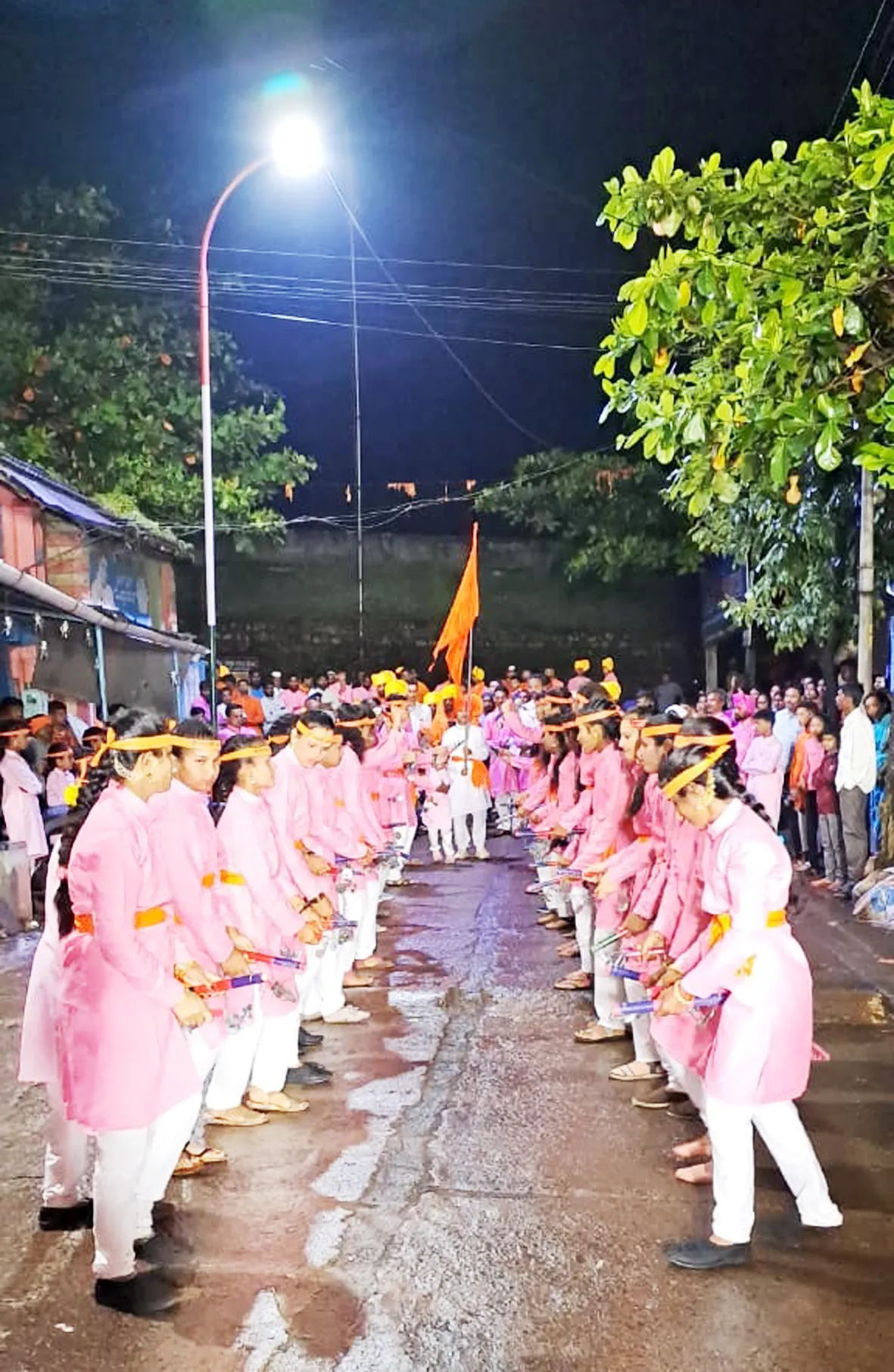 लेझीम मिरवणुकीसाठी गल्लीतील सर्वांनी चांगला प्रतिसाद दिला. लहान बालकांसह तरुणी व तरुणांनी या लेझीम खेळामध्ये सहभाग घेतला. उत्साहाने ते मिरवणुकीत लेझीम प्रात्यक्षिके सादर करताना दिसत होते. यामुळे या भागात ही मिरवणूक सर्वांसाठीच लक्षवेधी ठरली होती. स्वेच्छेने सर्वांनी पिंक व्हाईट रंगाचा कुर्ता परिधान केला होता. मिरवणुकीत लहान बालके लेझीम घेऊन नृत्य करत होती. भाविक मिरवणुकीचे जल्लोषात स्वागत करीत होते. संपूर्ण गावात तब्बल दहा तास ही मिरवणूक काढण्यात आली. या आगळय़ावेगळय़ा मिरवणुकीमुळे गल्लीतील तरुणांनी एक वेगळा संदेश समाजाला दिला आहे. संपूर्ण गावात गणपती मिरवणूक काढल्यानंतर गावाजवळील तलावात सार्वजनिक गणेशोत्सव मंडळाच्या गणेशमूर्तीचे विसर्जन करण्यात आले. यावेळी नागरिक मोठय़ा संख्येने उपस्थित होते.