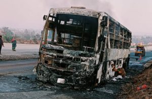 संकेश्वर : भरधाव जाणाऱ्या खासगी आराम बसचा टायर फुटून लागलेल्या आगीत बस जळून खाक झाल्याची घटना शुक्रवारी पहाटे 5 वाजता शिंदेवाडी फाट्यानजीक राष्ट्रीय महामार्गावर घडली. सुदैवाने या घटनेत कोणतीही जीवितहानी झालेली नाही. या घटनेत प्रवाशांचे साहित्य व बसचे असे सुमारे 20 लाखांचे नुकसान झाल्याची माहिती अग्निशमन दलाच्या जवानांनी दिली आहे. या घटनेसंदर्भात समजलेली अधिक माहिती अशी, शर्मा ट्रॅव्हल्सची आराम बस (क्र. पीवाय 01 डीए 7676) ही बस मुंबईहून बेंगळूरकडे निघाली होती. दरम्यान शुक्रवारी पहाटे 5 वाजण्याच्या सुमारास राष्ट्रीय महामार्गावरील शिंदेवाडी फाट्यानजीक येताच बसचा टायर अचानक फुटला. त्यावेळी चालकाने प्रसंगावधान राखत वाहन रस्त्याच्या कडेला घेतले. त्यानंतर तातडीने सर्व प्रवाशांना वाहनातून खाली उतरण्याची सूचना केली.