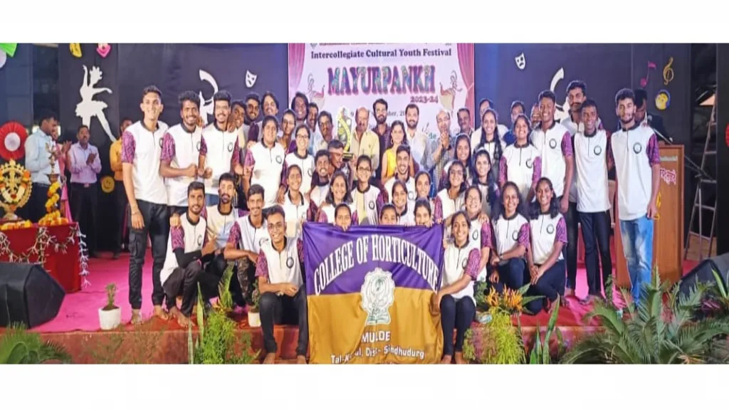 डॉ.बाळासाहेब सावंत कोकण कृषी विद्यापीठ (दापोली ) आयोजित आंतर महाविद्यालयीन सांस्कृतिक स्पर्धा – मयुरपंख २०२३ मध्ये मुळदेच्या उद्यानविद्या महाविद्यालय संघाने सर्वसाधारण विजेतेपद पटकावले,तर दापोलीचा कृषी महाविद्यालय संघ उपविजेता ठरला. उत्साही आणि जल्लोषी वातावरणात स्पर्धेचा समारोप मान्यवरांच्या उपस्थितीत करण्यात आला.डॉ.बाळासाहेब सावंत कोकण कृषी विद्यापीठ १८ वी मयुरपंख स्पर्धा कुडाळ तालुक्यातील मुळदे येथील उद्यानविद्या महाविद्यालयात उत्साहात झाली. या विद्यापीठाच्या इतिहासात तीन वेळा या स्पर्धेचे यशस्वी आयोजन करणारे उद्यानविद्या महाविद्यालय एकमेव महाविद्यालय ठरले. तीन दिवस चाललेल्या या स्पर्धेमध्ये विविध २५ महाविद्यालयांच्या ५०० विद्यार्थ्यांनी विविध २२ स्पर्धा प्रकारांमध्ये सहभाग नोंदविला. यात संगीत, नृत्य, साहित्य, रंगमंच, कला आदी स्पर्धांचा समावेश होता. स्पर्धेच्या समारोप कार्यक्रमासाठी डॉ.बाळासाहेब सावंत कोंकण कृषी विद्यापीठ ( दापोली) चे कला व क्रीडा संचालक संचालक डॉ.विठ्ठल नाईक, विद्यार्थी कल्याण अधिकारी नितीन वागळे, विद्यापीठ सांस्कृतिक समन्वयक प्रा. निलेश शिरसाट, वेतोबा फेम कलाकार निलेश गुरव, छोट्या बयोची मोठी कहाणी या टीवी मालिकेतील बालकलाकार रुची नेरूरकर, गायक व तबला वादक श्री.सिद्धेश कुंटे, गीतकार व कथा लेखक डॉ.प्रणय प्रभू व महाविद्यालयाचे सहयोगी अधिष्ठाता डॉ.राजन खांडेकर यांच्या प्रमुख उपस्थितीत या स्पर्धेचा समारोप करण्यात आला. उपस्थित मान्यवरांनी या स्पर्धेच्या उत्कृष्ट आयोजनाबद्दल उद्यानविद्या महाविद्यालयाचे भरभरून कौतुक केले व पुढील वाटचालीसाठी शुभेच्छा दिल्या. विविध स्पर्धांमध्ये सहभागी झालेल्या स्पर्धक तसेच संघ व्यवस्थापकांना प्रशस्तीपत्र आणि सन्मानचिन्ह देऊन सन्मानित करण्यात आले. सूत्रसंचालन महाविद्यालयाचे सांस्कृतिक समन्वयक डॉ.परेश पोटफोडे व आभार डॉ.संदीप गुरव यांनी मानले.
