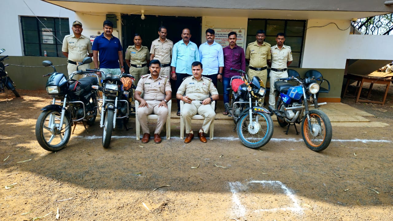 बेळगाव : मोटारसायकली चोरणाऱ्या त्रिकुटाला अटक करून त्यांच्याजवळून सव्वालाखाच्या चार मोटारसायकली जप्त करण्यात आल्या आहेत. मारिहाळ पोलिसांनी ही कारवाई केली आहे. या त्रिकुटाने बेळगाव येथील माळमारुती व मुरगोड पोलीस स्थानकाच्या कार्यक्षेत्रातही मोटारसायकली चोरल्याची कबुली दिली आहे. सुरेश रामप्पा इंचल (वय 19) रा. सुनकुप्पी, ता. बैलहोंगल, हणमंत लक्काप्पा वंटी (वय 30) रा. ममदापूर, ता. गोकाक अशी त्यांची नावे असून यामध्ये एका अल्पवयीन मुलाचाही समावेश आहे. सुरेश व हणमंत हे दोघे व्यवसायाने वाहनचालक आहेत. बेळगाव ग्रामीणचे पोलीस उपअधीक्षक एस. व्ही. गिरीश यांच्या मार्गदर्शनाखाली मारिहाळचे पोलीस निरीक्षक गुरुराज कल्याणशेट्टी, उपनिरीक्षक मंजुनाथ नायक, चंद्रशेखर सी. व त्यांच्या सहकाऱ्यांनी ही कारवाई केली आहे. 31 ऑक्टोबर 2023 रोजी पंतमहाराजांच्या यात्रेवेळी अवधूतनगर येथे रस्त्याशेजारी उभी करण्यात आलेली एक स्प्लेंडर मोटारसायकल चोरण्यात आली होती. या प्रकरणाचा तपास करताना तिघा जणांना अटक करून चार मोटारसायकली जप्त करण्यात आल्या आहेत.