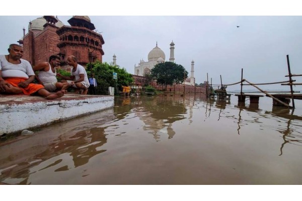 यमुना नदीच्या पाण्याच्या पातळीत सातत्याने वाढ होत आहे. सोमवारी सकाळी यमुना नदीची पाणी पातळी 497.20 फुटांवर पोहोचली होती. यमुना नदीचे पाणी ताजमहालच्या पाठीमागे असलेल्या ताज व्ह्यू पॉईंटवरही पोहोचल्यानंतर ते सामान्य पर्यटकांसाठी बंद करण्यात आले आहे. यासोबतच ताजमहालच्या मागे मेहताब बागेजवळ असलेल्या ताज सुरक्षा पोलीस चौकीतही पाणी तुंबले आहे. यमुनेचे पाणी चौकीपर्यंत पोहोचल्यानंतर तेथे सुरक्षेसाठी तैनात पोलिसांनी आपले ठिकाण हलवले आहे.