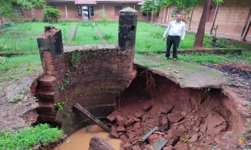 खेमराज प्रशाळेच्या मुख्याध्यापक दालनाच्या समोरच पिण्याच्या पाण्याची विहीर आहे. आज दुपारी बांदा परिसरात मुसळधार पाऊस कोसळला. सायंकाळी ५ वाजण्याच्या सुमारास अचानक मोठा आवाज झाल्याने मुख्याध्यापक पावसकर यांनी याठिकाणी धाव घेतली. त्यावेळी विहीर कोसळल्याचे निदर्शनास आले. सुदैवाने सायंकाळची घटना असल्याने शाळेत विद्यार्थी उपस्थित नव्हते त्यामुळे मोठी दुर्घटना टळली. मात्र विहीर कोसळल्याने शाळेचे दीड लाख रुपयांचे नुकसान झाले. बांदा तलाठी वर्षा नाडकर्णी यांनी पंचनामा करून नुकसानीची नोंद केली आहे.