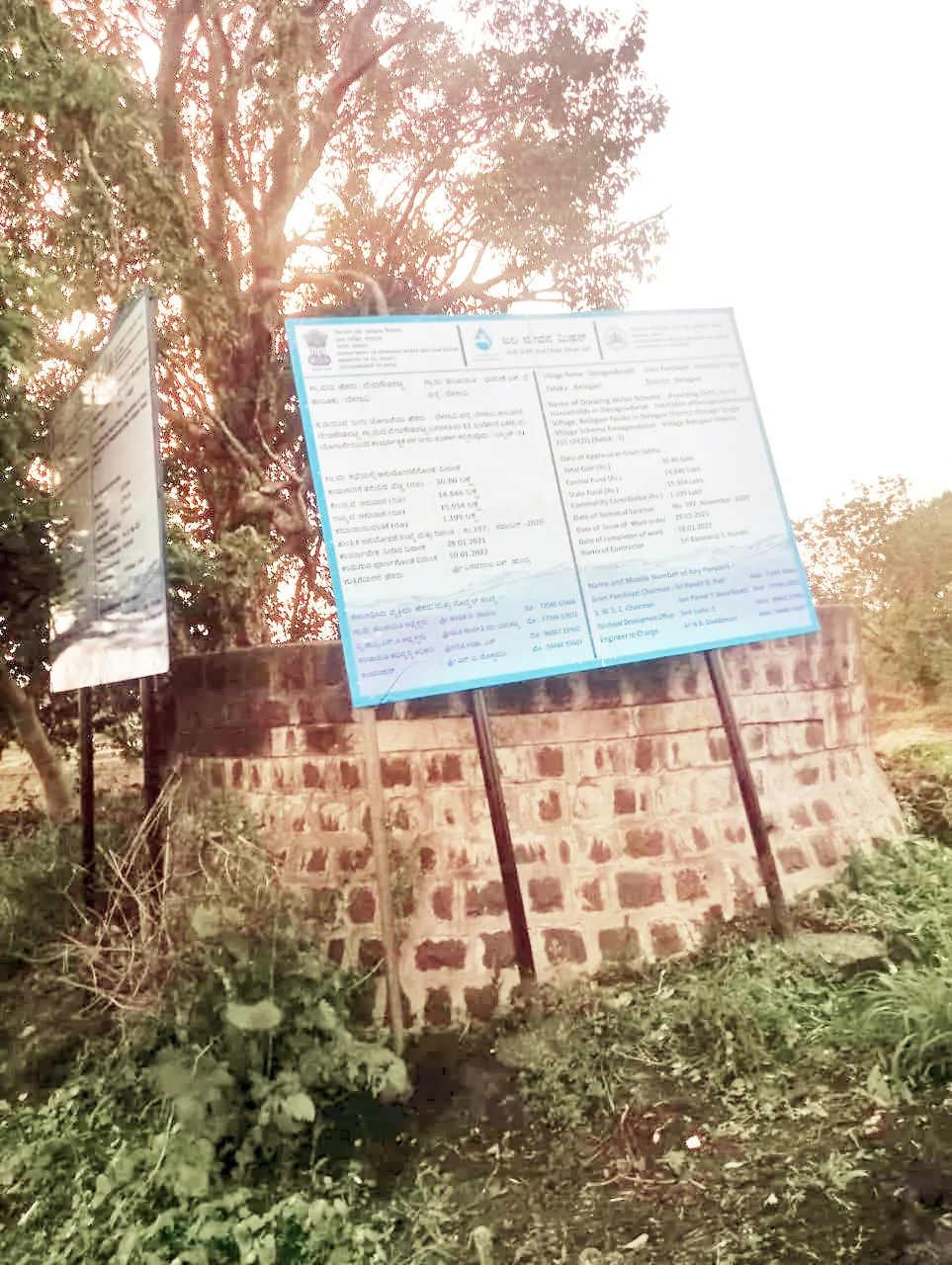 देवगणहट्टी येथे जलजीवन अभियान अंतर्गत शासनाकडून जलकुंभ निर्माण करण्यासाठी 2020 साली मंजूर झाले होते. गेली पाच ते सहा वर्षे झाली तरी हा जलकुंभ आजही अर्धवट अवस्थेत पडून आहे. परंतु गेल्या 15 वर्षांपूर्वी बांधण्यात आलेल्या जुन्या जलकुंभशेजारी 2020 साली मंजूर झालेला जलकुंभ पूर्ण झाल्याच्या माहितीचा फलक उभारण्यात आल्याने देवगणहट्टी व परिसरात शासनाच्या या गलथान कारभाराबद्दल आश्चर्य व्यक्त करण्यात येत आहे. धामणे ग्राम पंचायत कार्यक्षेत्रातील देवगणहट्टी येथे जलजीवन अभियान अंतर्गत शासनाकडून 2020 साली नव्याने जलकुंभ निर्माण करण्यासाठी 28 लाख रुपये मंजूर झाले होते. हे जलकुंभ निर्माण करण्यासाठी देवगणहट्टी येथील शिवलिंगय्या मास्तमर्डी या शेतकऱ्याने आपल्या शेतातील सर्व्हे क्रमांक 461 मध्ये जागा दिली आणि जलकुंभ कामाला सुरुवात झाली. परंतु जलकुंभचे कॉन्ट्रॅक्टर बसवराज हुली हे काम अर्धवट करून सोडून गेले आहेत. परंतु आता दहा-बारा दिवसांपूर्वी हे जलकुंभ पूर्ण झाल्याचा माहिती फलक मात्र 15 वर्षांपूर्वी बांधण्यात आलेल्या जलकुंभ शेजारी उभारला आहे. त्यामुळे देवगणहट्टी गावात हा चर्चेचा विषय बनला असून याबद्दल येथील नागरिकांनी लोकप्रतिनिधींना माहिती दिली. लोकप्रतिनिधींनी शासकीय अधिकाऱ्यांची या प्रकाराबद्दल कानउघाडणी केल्याचे नागरिकांकडून सांगण्यात आले.