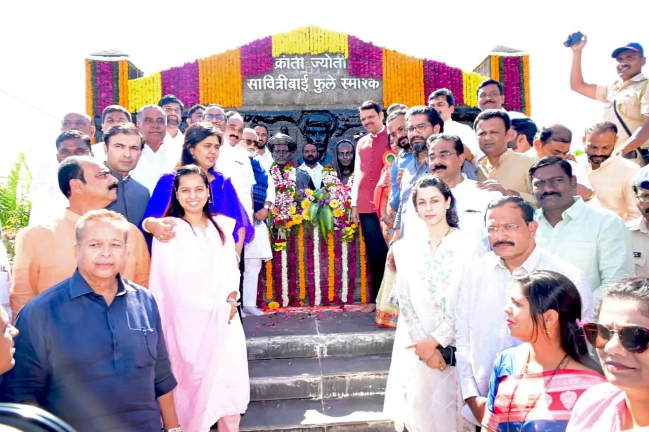 खंडाळा तालुक्यातील नायगांव येथे ग्रामविकास विभाग महाराष्ट्र शासन व सातारा जिल्हा परिषद, पंचायत समिती यांच्या संयुक्त विद्यमाने क्रांतीज्योती सावित्रीबाई फुले यांच्या 194 व्या जयंती उत्सवास पार पडला. प्रारंभी मुख्यमंत्री देवेंद्र फडणवीस यांनी क्रांतीज्योती सावित्रीबाई फुले जन्मस्थळी यांच्या असलेल्या स्मारकास पुष्पहार अर्पण करुन अभिवादन केले. यांनतर ज्ञानज्योती सावित्रीबाई फुले शिल्पसृष्टीचीही पाहणी केली. या ठिकाणी स्मारक उभारणी आराखड्याचे सादरीकरण करण्यात आले. त्यानंतर कार्यक्रमात विविध विकासकामांचे उद्घाटन करण्यात आले. यामध्ये ब वर्ग पर्यटन क्षेत्रांतर्गत उभारण्यात आलेल्या शासकीय प्रतिक्षालयाचे उद्घाटन, जलजीवन मिशन अंतर्गत वॉटर एटीएमचे उद्घाटन, महाज्योतीच्या विविध योजनांच्या प्रदर्शन दालनांचे उद्घाटन, महिला बचतगटांच्या उत्पादित वस्तूंच्या विक्री स्टॉल्सचे उद्घाटन, जिल्हा परिषद शाळेतील निबंध चित्रकला व वकृत्त्व, स्पर्धेतील विजेते, विद्यार्थी यांच्या बक्षिस वितरण, यशस्वी महिलांचा सन्मान करण्यात आला.