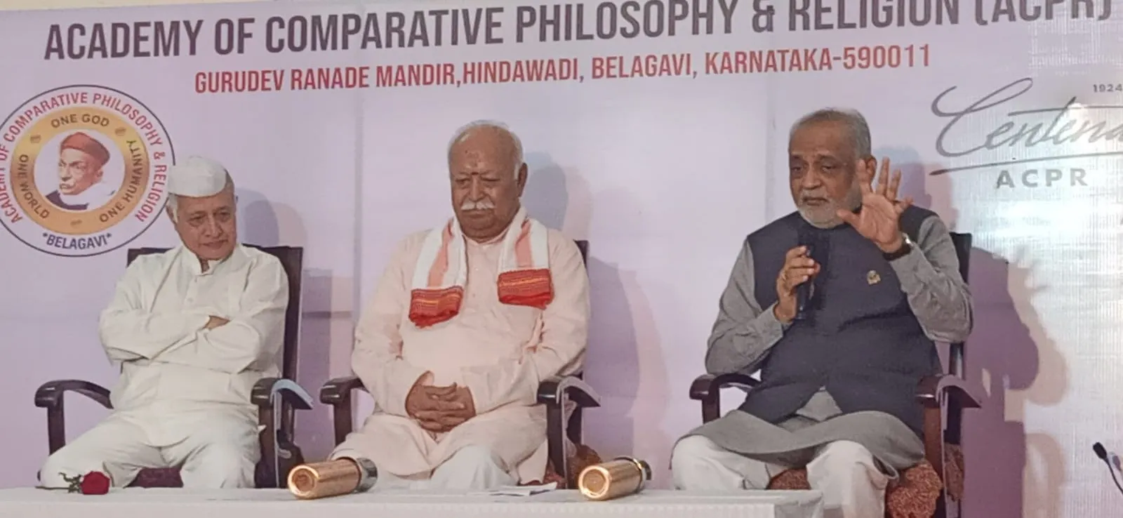 सचिव अॅङ एम. बी. जिरली यांनी प्रास्ताविक व स्वागत केले. प्रारंभी प्रार्थना सादर झाली. यावेळी संत ज्ञानेश्वर, संत मुक्ताबाई व जीव्हेश्वर महिला मंडळातर्फे भजन सादर करण्यात आले. यावेळी डॉ. मोहन भागवत व कमलेश पटेल यांचा शाल, पुष्पगुच्छ देऊन एसीपीआरच्यावतीने गौरव करण्यात आला. मंदिर परिसरात रोप लागवडीलाही चालना देण्यात आली. डॉ. भागवत पुढे म्हणाले, भक्तीशिवाय ज्ञान अहंकाराकडे घेऊन जाते. ज्ञान आणि कर्माबरोबर भक्ती असली पाहिजे. ज्ञान, भक्ती आणि कर्म ही तिन्ही सोबतच चालतात. यावेळी कमलेश पटेल म्हणाले, रामायण, महाभारत कशासाठी झाले, याची जाणीव ठेवून राष्ट्राची सेवा केली पाहिजे, असे स्पष्ट केले. यावेळी एसीपीआर पदाधिकारी, भजनी मंडळ आणि नागरिक बहुसंख्येने उपस्थित होते.