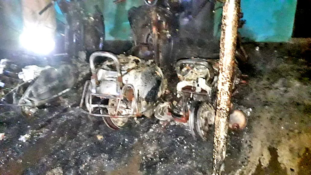 कारोणा हळदोणा खुर्सावाडा येथील राजेंद्र वळवईकर यांच्या मालकीच्या घरातील गॅरेजमध्ये ठेवण्यात आलेल्या 3 दुचाकी व सायकलीला अज्ञातांनी आग लावली. ही घटना रविवारी पहाटे घडली. यात वळवईकर यांचे अंदाजे 3.50 लाख रुपयांचे नुकसान झाल्याची माहिती उपलब्ध झाली आहे.