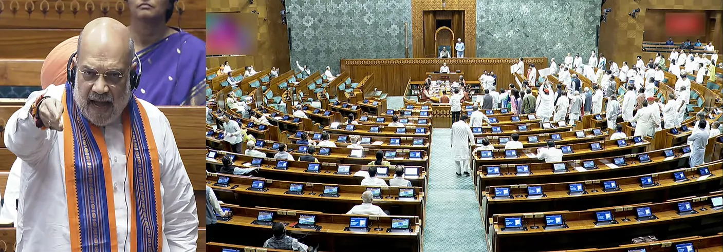 केंद्रीय गृहमंत्री अमित शाह यांनी बुधवारी लोकसभेत तीन विधेयके सादर केल्यापासूनच मोठा गोंधळ सुरू झाला. यातील एक विधेयक पंतप्रधान किंवा मुख्यमंत्र्यांना गंभीर गुह्यासाठी अटक केल्यास आणि 30 दिवस तुरुंगात राहिल्यास त्यांना पदावरून काढून टाकण्याशी संबंधित आहे. शहा यांनी ही विधेयके सादर करताच विरोधी पक्षाच्या खासदारांनी निषेध करण्यास सुरुवात केली. त्यांनी विधेयकांच्या प्रती फाडून शाह यांच्या दिशेने फेकल्या. तसेच ते घोषणाबाजी करत सभागृहाच्या मध्यभागी पोहोचल्यामुळे सभागृहाच्या कामकाजात व्यत्यय निर्माण झाला. सुरुवातीला लोकसभेचे कामकाज तीन वाजेपर्यंत तहकूब करण्यात आले आहे. लोकसभेचे कामकाज सुरू झाल्यानंतर सभापती ओम बिर्ला यांनी गोंधळ घालणाऱ्या विरोधी खासदारांना फटकारले. त्यानंतरही गदारोळ सुरू राहिल्यामुळे सभागृह पुन्हा संध्याकाळी पाच वाजेपर्यंत तहकूब करावे लागले.