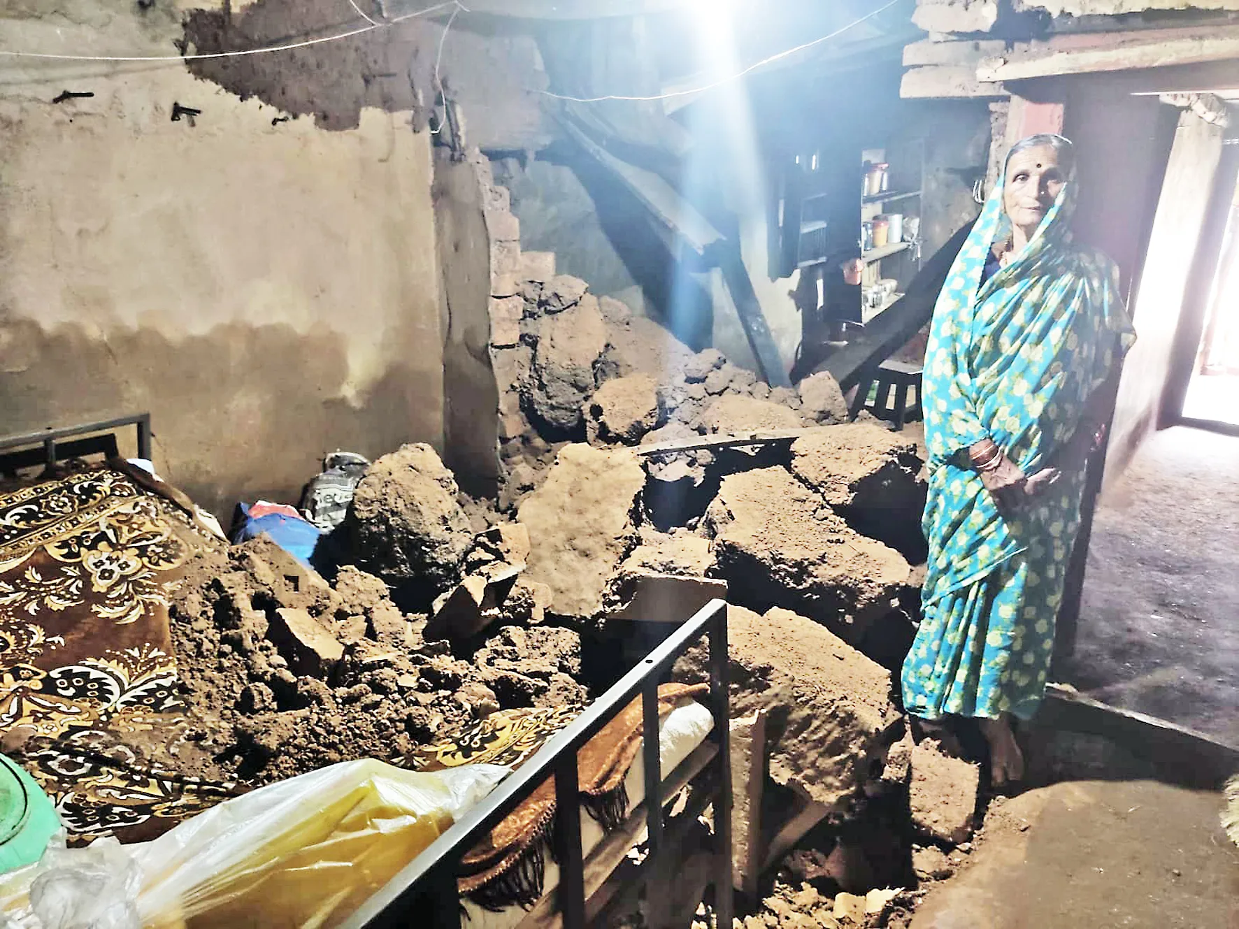 नुकत्याच झालेल्या मुसळधार पावसाच्या माऱयामध्ये लक्ष्मी नागोजी पावशे यांचे राहते घर कोसळले. याच घरामध्ये लक्ष्मी नागोजी पावशे या एकटय़ाच वास्तव्य करून राहतात. पतीचेही निधन झाले आहे. तर मुलगा कामानिमित्त बाहेरगावी राहतो. ज्या दिवशी घर कोसळले त्या दिवशी नशीब बलवत्तर म्हणून त्या आपल्या दीराच्या घरी झोपायला गेल्याने त्या बचावल्या. सदर घराचे भरपूर नुकसान झाल्याने नवीन घराची उभारणी केल्याशिवाय पर्याय नाही.