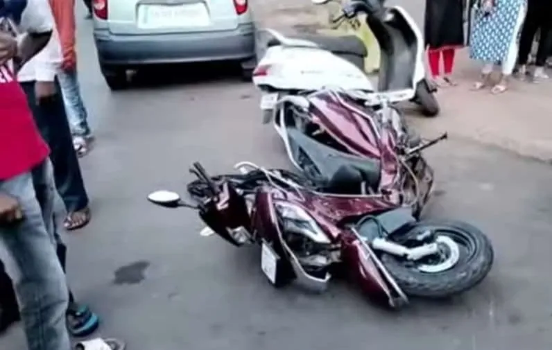 वास्कोतील अपघातात दुचाकी सापडली बसच्या चाकाखाली पोलिसांना चकवण्यासाठी तिघे युवक जात होते ‘टिबल सीट’