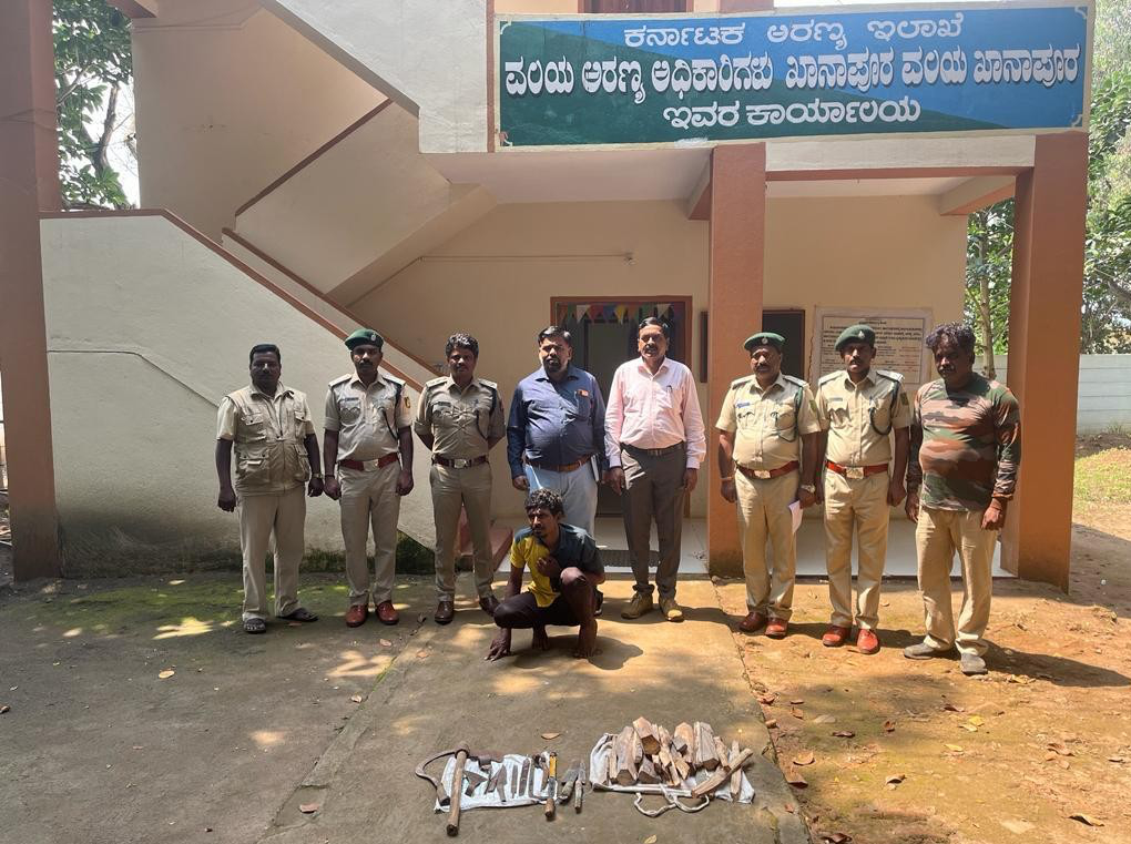 चंदनसह धारधार शस्त्रे जप्त : खानापूर वनविभागाची कारवाई