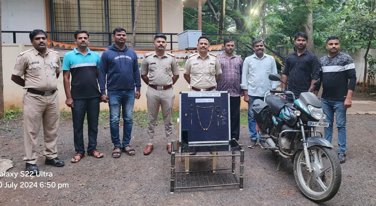 बेळगाव : एका अट्टल घरफोड्याला अटक करून टिळकवाडी पोलिसांनी पाच लाख रुपयांचा ऐवज जप्त केला आहे. घरफोडीत चोरलेले दागिने फायनान्समध्ये ठेवून त्याने पैसे काढल्याचे पोलीस तपासात उघडकीस आले आहे. विठ्ठल फकिराप्पा कुरबर, रा. संपगाव असे त्याचे नाव आहे. पोलीस आयुक्त यडा मार्टिन मार्बन्यांग, उपायुक्त पी. व्ही. स्नेहा, खडेबाजारचे एसीपी शेखरप्पा यांच्या मार्गदर्शनाखाली टिळकवाडीचे पोलीस निरीक्षक परशराम पुजेरी, उपनिरीक्षक संतोष दळवाई, महेश पाटील, सोमलिंग करलिंगन्नावर, संजू संगोटी, मल्लिकार्जुन पात्रोट, लाडजीसाब मुल्तानी, तांत्रिक विभागाचे रमेश अक्की, महादेव काशिद आदींनी ही कारवाई केली आहे. टिळकवाडी पोलीस स्थानकाच्या कार्यक्षेत्रात विठ्ठलने चोऱ्या केल्याची कबुली दिली असून पोलिसांनी त्याची कसून चौकशी केली असता चोरलेले दागिने मुथ्थुट फायनान्समध्ये ठेवून 4 लाख 80 हजार रुपये काढल्याची कबुली त्याने दिली. पोलिसांनी 40 ग्रॅमचे गंठण, 30 ग्रॅमच्या दोन बांगड्या, 10 ग्रॅमची कर्णफुले व गुन्ह्यासाठी वापरलेली मोटारसायकल असा एकूण 5 लाख 2 हजार रुपये किमतीचा ऐवज जप्त केला आहे.