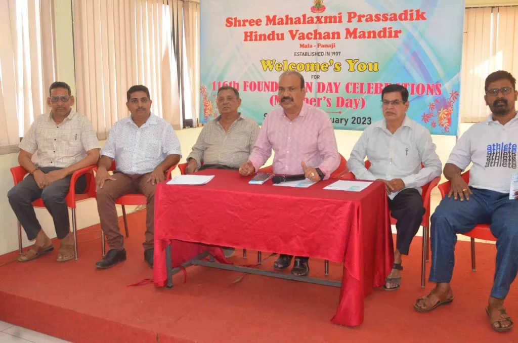 प्रतिनिधी : मळा-पणजी येथील श्री महालक्ष्मी प्रासादिक हिंदू वाचन मंदिराचा 116 व्या स्थापनादिनानिमित्त रविवार दि. 29 रोजी विविध कार्यक्रमाचे आयोजन केले असल्याची माहिती वाचन मंदिराचे अध्यक्ष महेश खांडोळकर यांनी पत्रकार परिषदेत दिली. यावेळी वाचन मंदिराचे पदाधिकारी दिपेश मणेरकर, नारायण पेडणेकर, मुकुंद खांडोळकर, संदेश आमोणकर व नरेश पेडणेकर हजर होते.