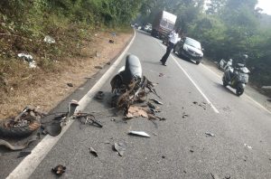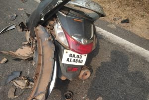 सुकतळे येथून आमोणेपर्यंत काल शुक्रवारपासून खनिज वाहतूक सुरू झाली आहे. खनिजवाहू टिप्पर जीए 07 पी 2511 ट्रक खनिजमाल घेऊन आमोणेच्या दिशेने जात होता. नेमका याचवेळी युवकांचा एक गट ‘रेंट अ बाईक’ च्या दुचाकीवरून दूध सागरच्या दिशेने जात होता. त्यातील दुचाकी जीए 03 एजे 4840 ज्युपिटरवर राहुल बन्सल व शौनक प्रभाकर दोघेही जात होते. यावेळी शौनक प्रभाकर याची दुचाकी पाठीमागे राहिली. आपल्या मित्राना गाठण्यासाठी तो वेगाने जात असताना टिप्पर ट्रकची समोरासमोर धडक झाली. अपघातात रेंट व बाईकच्या दुचाकीचे दोन तुकडे झाले आहेत. यावेळी राहूल बन्सल हा निपचित पडला होता. पिळ्यो धारबांदोडा येथील डॉक्टरांनी त्याला मृत घोषित केले. तसेच दुसरा जखमी शौनक प्रभाकर याला तातडीने गोमेकॉत हलविण्यात आले.