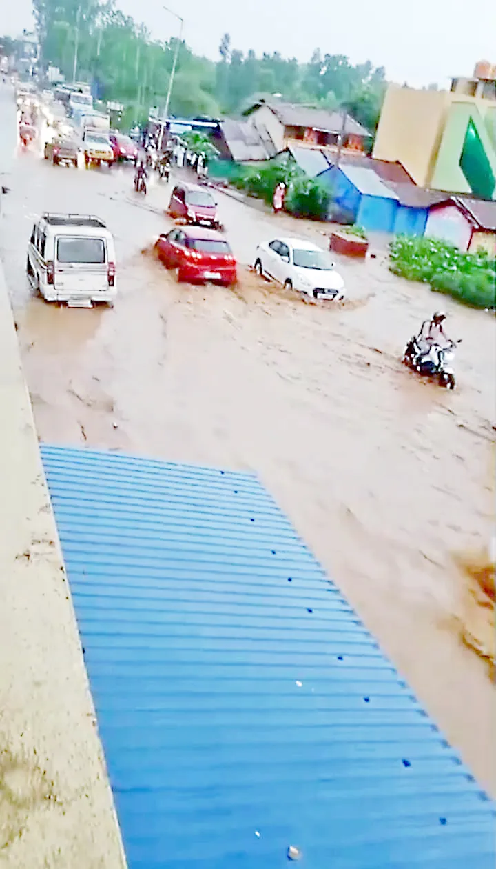 बेळगाव तालुक्यातील हिरेबागेवाडी व परिसरातील बस्सापूर-अरळीकट्टी भागात शुक्रवारी सायंकाळच्या सुमारास दोन तास वादळी वाऱ्यासह अवकाळी मुसळधार पावसाने झोडपून काढल्याने परिणामी हिरेबागेवाडी गावात व शिवारात पावसाने हाहाकार माजवत सर्वत्र पाणीच पाणी केले आहे. विजेच्या कडकडाटांसह वाऱ्यासह जोरदार पाऊस कोसळल्याने शिवारातील तरकारी पिके जमीनदोस्त झाल्या आहेत. विजांचा कडकडाट व ढगांच्या गडगडाटासह झालेल्या मुसळधार पावसामुळे हिरेबागेवाडी गावातील नाले, गावागावातील ओढ्यांना पूर आला. रत्यांनाही ओढ्याचे स्वरूप आल्याने काही काळ जनजीवन ठप्प झाले. तर हिरेबागेवाडी-बैलहोंगल मार्गावर पाणी आल्याने वाहतूक विस्कळीत झाली होती.गावात मुसळधार पावसामुळे गटारीचे पाणी गावात शिरल्याने तळ्याचे स्वरूप प्राप्त झाले होते. घरांमध्ये पाणी शिरल्याने नागरिकांची तारांबळ उडाली.
