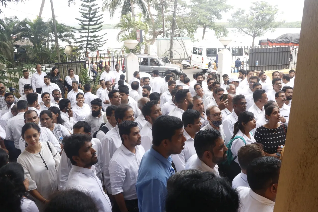 मोठ्या संख्येने आलेल्या वकीलांनी सीआयडी कार्यालयाच्या गेटचा मुख्य दरवाजा ओलांडल्यानंतर त्यांना पोलिसांनी अडविले. त्यामुळे ते एकाही कार्यालयात जाऊ शकले नाही. वकिलांच्या शिष्टमंडळाने सीआयडीचे निरीक्षक राजू राऊत देसाई यांची भेट घेतली आणि पोलिसांना अटक करण्याची मागणी केली. मात्र हा गुन्हा केवळ तक्रारीवर दाखल करण्यात आला असून अद्याप पुरावे मिळालेले नाहीत. त्यामुळे सध्यातरी पोलिसांना अटक करणे शक्य नाही, असेही त्यांनी सांगितले.