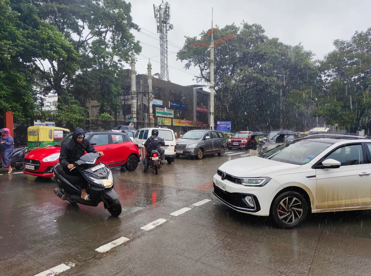 बेळगाव : जिल्हाधिकारी व न्यायालया-नजीकच्या आरटीओकडून राणी चन्नम्मा सर्कलकडे जाणाऱ्या मुख्य रस्त्यावर भरपावसात ट्रॅफिक जाम झाल्याचे पहावयास मिळाले. मंगळवारी सकाळपासूनच शहरात मुसळधार पाऊस होता. यामुळे काहीशी नागरिकांची तारांबळ उडाली. पण एवढ्या पावसातही मुख्य रस्त्यावर वाहतूक कोंडी झाल्याचे चित्र दिसून येत होते. जिल्हाधिकारी कार्यालय बसस्थानकापासून ते मराठा मंडळ संस्थेपर्यंत वाहने थांबली होती. पावसातच ट्रॅफिक जाम झाल्याने नागरिकांना दुहेरी समस्यांचा सामना करावा लागला.