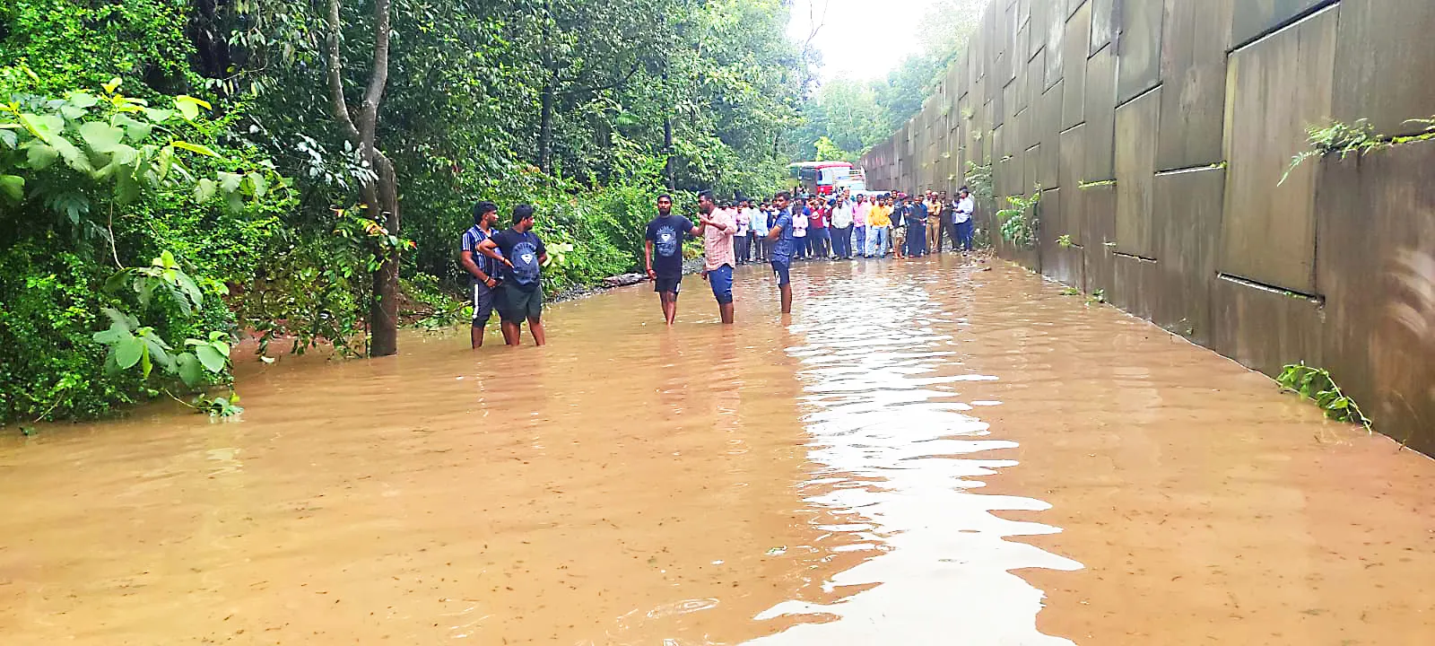 रस्त्यावर चार फूट पाणी साचल्याने धोकादायक : तिनईघाट-मारसंगळमार्गे वाहतूक वळविली