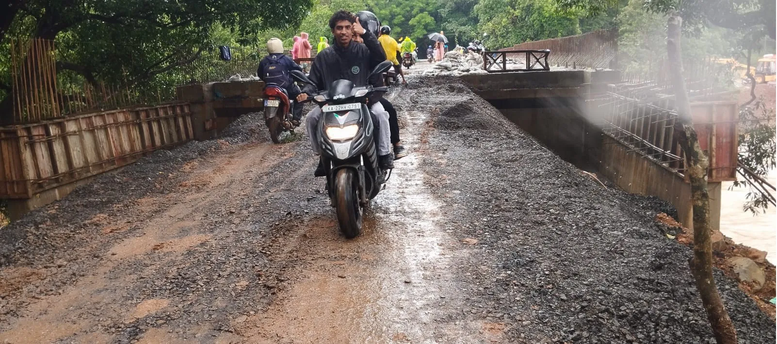 या पुलाचे बांधकाम हाती घेण्यापूर्वी मलप्रभा नदीतील पाण्याचा निचरा होण्यासाठी नदीपात्रात दहा पाईप घालून पर्यायी रस्ता आणि पूल बनवण्यात आला होता. 20 जानेवारीपासून या पर्यायी रस्त्यावरूनच संपूर्ण वाहतूक सुरू होती. परंतु मे महिन्याच्या अखेरीस झालेल्या मान्सूनपूर्व पावसामुळे मलप्रभा नदीच्या पाणीपातळीत वाढ झाल्याने 25 मे रोजी नदीतील रस्ता खचला. त्यामुळे या मार्गावरील सर्व वाहतूक बंद करण्यात आली होती. दोन दिवसांनंतर पाण्याचा प्रवाह सुरळीत होण्यासाठी पुन्हा त्या ठिकाणी पाण्याचा निचरा होण्यासाठी दहा पाईप घालून रस्ता वाहतुकीसाठी खुला करण्यात आला होता. परंतु पुन्हा 8 जून रोजी मलप्रभा नदीत बनवलेला पर्यायी मार्ग पुन्हा खचल्याने बेळगाव-चोर्ला-गोवा अशी वाहतूक पूर्णपणे बंद करण्यात आली होती. त्यानंतर पुन्हा रस्त्याची दुरुस्ती करून दोन दिवसांनी पुन्हा दुचाकी आणि चारचाकी वाहनांसाठी रस्ता खुला करण्यात आला होता. यावेळी मात्र गेले चार दिवस कणकुंबी पाणलोट क्षेत्रात झालेल्या संततधार पावसामुळे मलप्रभा नदीच्या पाणीपातळीत वाढ झाल्याने 15 जून रोजी मलप्रभा नदीच्यापात्रात बनवलेला पर्याय रस्ता वाहूनच गेला. त्यामुळे बेळगाव-चोर्ला-गोवा अशी वाहतूक तिसऱ्यांदा पूर्णपणे बंद करण्यात आला होता.