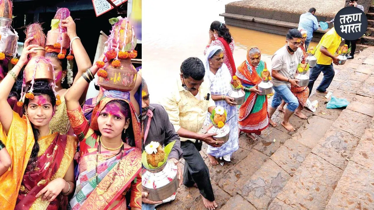 देवळाला पाच प्रदक्षिणा घालून नदीच पाणी देवीच्या पायरीवर ओतल जातं