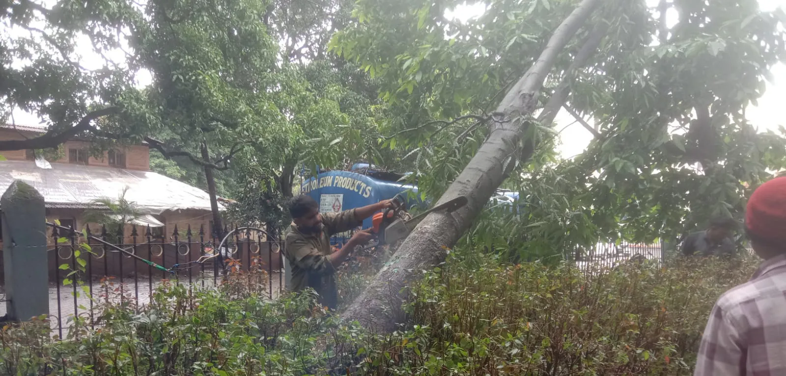 बेळगाव : सतत सुरू असलेल्या मुसळधार पावसामुळे शहरातील रस्त्यांवर पाणी तुंबण्यासह झाडांची पडझड सुरूच आहे. बुधवारी टिळकवाडी येथील बुधवार पेठ, शुक्रवार पेठ आदी ठिकाणी झाडांची पडझड झाली. मारुतीनगर, अमननगर, पंजीबाबा यासह उत्तर भागात रस्त्यावर साचलेले पाणी जेसीबीच्या साहाय्याने वाहून जाण्यास वाट करून दिली. उद्यमबाग येथील मुख्य रस्त्यावर पाणी साचल्याने दुभाजक तीन ठिकाणी फोडून पाणी वाहून जाण्यास मार्ग करून देण्यात आला. चार दिवसांपासून सुरू असलेल्या संततधार पावसामुळे शहर व उपनगरात झाडे मोडून पडत आहेत. त्यामुळे हेस्कॉमचे नुकसान होत आहे. मंगळवारी स्वत: मनपा आयुक्त शुभा बी. अधिकाऱ्यांसमवेत फिल्डवर उतरल्या होत्या. विविध ठिकाणी भेटी देऊन त्यांनी कर्मचाऱ्यांना कामाला लावले. बुधवारीही त्यांनी अधिकाऱ्यांच्या उपस्थितीत शहरात फेरफटका मारला. विशेष करून उत्तर विभागातील समस्यांची पाहणी केली.