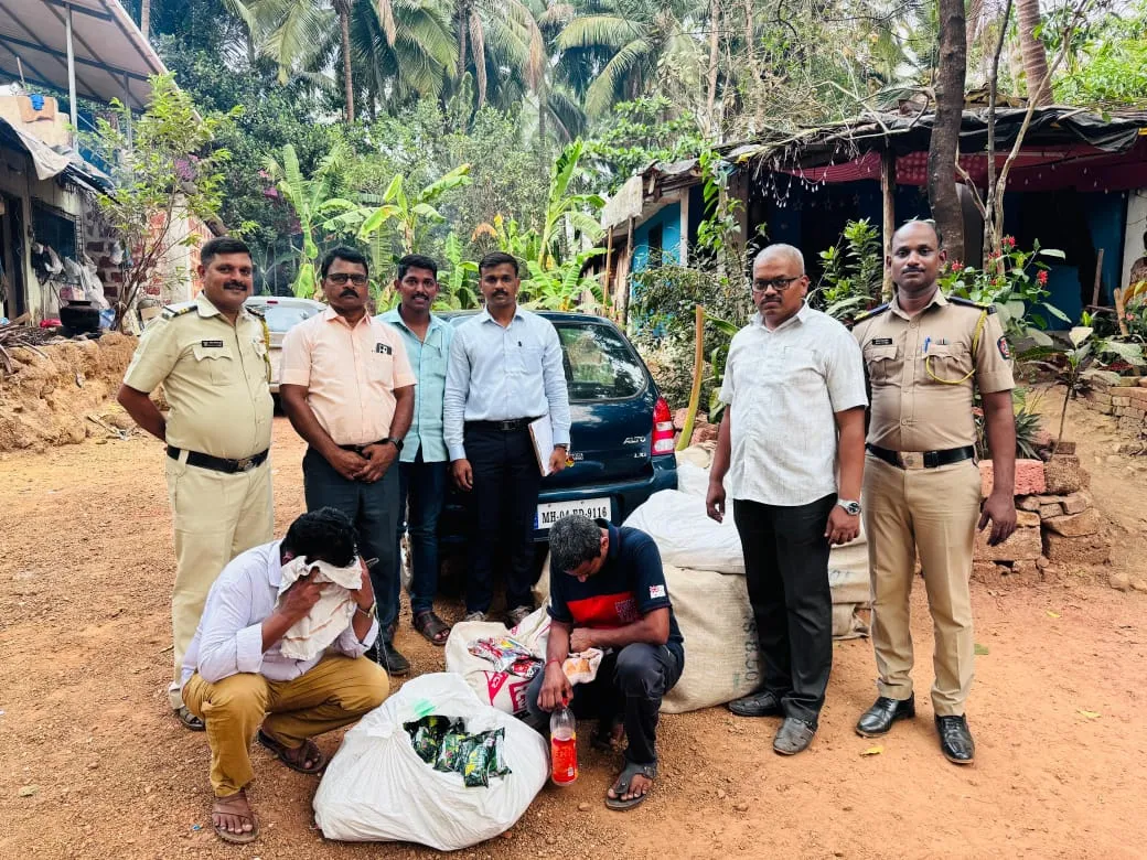 अवैधरित्या सुमारे सव्वा दोन लाख किंमतीच्या गुटखाची वाहतूक करताना स्थानिक गुन्हा अन्वेषण विभागाच्या पथकाने कारवाई करीत दोघांना अल्टो गाडीसह ताब्यात घेतले. ही कारवाई मंगळवारी सायंकाळी ओटवणे- चराठा मार्गावर करण्यात आली. याप्रकरणी बाबाजी विजय नाईक (42 रा- खासकीलवाडा सावंतवाडी) व उमेश रघुनाथ सावंत (50, वायंगणी ता.मालवण )या दोघांवर गुन्हा दाखल करण्यात येणार असल्याची माहिती स्थानिक गुन्हा अन्वेषण विभागाच्या पथकाने दिली. अल्टो गाडीतून अवैधरित्या गुटखा व तंबाखूजन्य पदार्थांची ओटवणे येथून वाहतूक होणार असल्याची गुप्त माहिती स्थानिक गुन्हा अन्वेषण विभागाला मिळाली. त्यानुसार स्थानिक गुन्हा अन्वेषण विभागाच्या पथकाचे निरीक्षक समीर भोसले, सहाय्यक निरीक्षक गुरुनाथ कोयंडे, हवालदार प्रकाश कदम व जयेश करमळकर यांनी मंगळवारी सायंकाळी चराठा येथे सापळा रचला होता. ओटवणेच्या दिशेने येणारी अल्टो कार तपासणीसाठी थांबवण्यात आली. कारची तपासणी केली असता कार मध्ये शासनाने प्रतिबंध केलेला 2 लाख 38 हजार रुपये किमतीचा गुटखा, तंबाखूजन्य पदार्थ असा मुद्देमाल आढळून आला. याप्रकरणी (बाबाजी नाईक, सावंतवाडी) व (उमेश सावंत, मालवण )या दोघांना ताब्यात घेतले तसेच वाहतुकीस वापरलेली एक लाख रुपये किंमतीची अल्टो कार जप्त करण्यात आली. याप्रकरणी सावंतवाडी पोलीस ठाण्यात गुन्हा दाखल करण्याची प्रक्रिया सुरू होती.