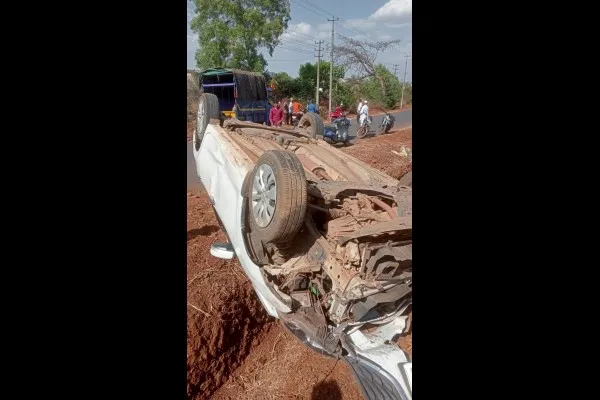 बेनकनहळ्ळीजवळ भरधाव कारने दुचाकीला ठोकरल्याने दुचाकीवरील दोघेजण जखमी झाले. या अपघातानंतर कार रस्त्याशेजारी ख•dयात उलटली आहे. शनिवारी दुपारी ही घटना घडली आहे.