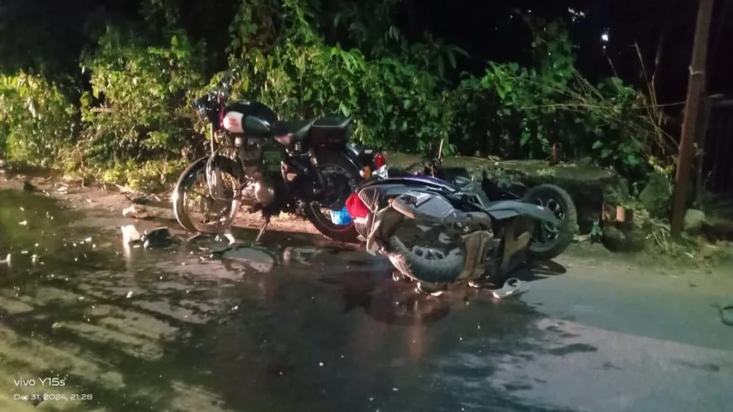 शहरातील सालईवाडा शिरोडा_ नाका जवळ दोन दुचाकी मध्ये झालेल्या अपघातात तिघेजण जखमी झाले असून त्यातील दोघेजण गंभीर जखमी झाले आहेत. हा अपघात मंगळवार दिनांक 31 डिसेंबर रोजी रात्री नऊ वाजण्याच्या सुमारास घडला. बुलेटस्वार ओमकार विजय पांढरे ( 24) रा निरवडे आणि टीव्हीएस दुचाकीस्वार, बाबुराव नाईक, रा कोलगाव हे दोघे गंभीर जखमी झाले आहेत. दोघांची प्रकृती गंभीर असल्याने त्यांना अधिक उपचारासाठी बांबुळी गोवा येथील रुग्णालयात हलविण्यात आले आहे.