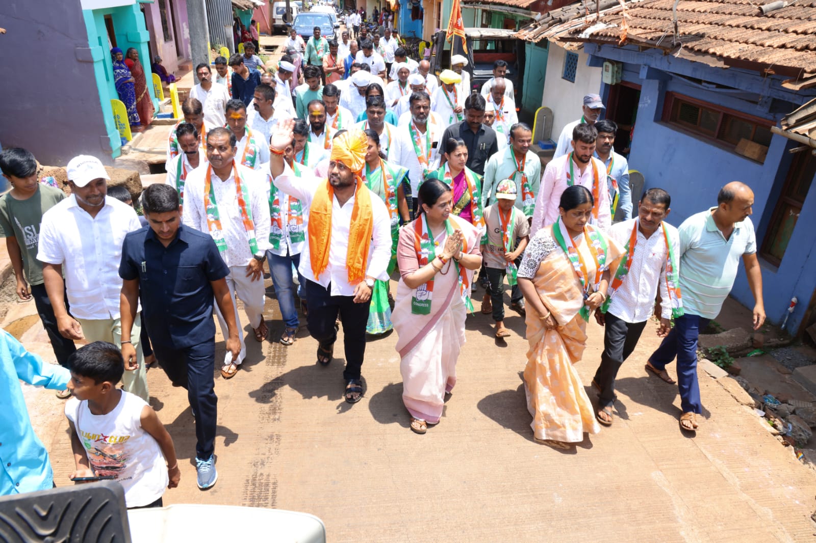 बेळगाव : गेल्या विधानसभा निवडणुकीमध्ये उचगाव ग्रामस्थांनी भरघोस मतदान करून आशीर्वाद दिला आहे. यावेळीही मृणाल हेब्बाळकर यांना भरघोस मतदान करून निवडून द्यावे आणि सेवा करण्याची संधी द्यावी, असे आवाहन महिला व बाल कल्याण मंत्री लक्ष्मी हेब्बाळकर यांनी केले. गुढीपाडव्याच्या निमित्ताने उचगाव येथील गणपती मंदिराला भेट देऊन पूजा केली. यानंतर गावामध्ये मतदानासाठी प्रचारफेरी काढली. या दरम्यान महिला आणि बाल कल्याण मंत्री लक्ष्मी हेब्बाळकर, उमेदवार मृणाल हेब्बाळकर यांच्यासह असंख्य कार्यकर्त्यांनी या प्रचारफेरीत सहभाग घेतला होता. विधानसभा निवडणुकीमध्ये उचगाववासीयांनी आपल्याला भरघोस मतदान करून निवडून दिले आहे. अशाच प्रकारे आता मृणाल हेब्बाळकर यांनाही ग्रामस्थांनी साथ द्यावी, अशी विनंती त्यांनी केली. यावेळी युवराज कदम, ग्राम पंचायत अध्यक्षा मथुरा तेरसे, बाळकृष्ण तेरसे, बाळासाहेब देसाई, नीलकंठराज गोळकर, इमाम ताशिलदार, जावेद जमादार, राम कदम, प्रफुल्ल चौगुले, शशिकांत जाधवसह ग्रामस्थ उपस्थित होते.