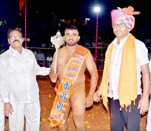 बेळगाव : मध्यवर्ती कुस्तीगीर संघटना बेळगाव आयोजित रामचंद्र मल्लाप्पा टक्केकर व शांता रामचंद्र टक्केकर यांच्या स्मरणार्थ गोविंद टक्केकर पुरस्कृत भव्य कुस्ती मैदानात सेना दलाच्या संग्राम पाटीलने उदयकुमार दिल्लीचा एकेरी पट काढून गुण मिळवित विजय संपादन केला. तर दुसऱ्या क्रमांकाच्या कुस्तीत प्रकाश इंगळगीने केशव भागवतचा कोंद एकचाक डावावर चीत करुन उपस्थित कुस्ती शौकिनांची मने जिंकली. आनंदवाडी आखाड्यात प्रमुख कुस्ती सेनादलचा आंतरराष्ट्रीय संग्राम पाटील व राष्ट्रीय सुवर्णपदक विजेता उदयकुमार दिल्ली ही कुस्ती पुरस्कर्ते गोविंद टक्केकर, अंजली पाटील, परशुरामभाऊ नंद्याळी, मारुती घाडी, नवरतनसिंग पोवार, संतोष होंगल, हिरालाल चव्हाण, रवी बिर्जे, सुरज घाडी आदी मान्यवरांच्या हस्ते लावण्यात आली. या कुस्तीत पहिल्याच मिनिटाला संग्रामने एकेरी पट काढून उदयकुमारला खाली घेण्याचा प्रयत्न केला. त्यातच उदयकुमारने कलाजंक मारुन संग्रामला खाली घेण्याचा प्रयत्न केला. पण त्यातून उदयने सुटका करुन घेतली. 4 थ्या मिनिटाला संग्रामने उदयकुमारला दुहेरी पट काढून हाताची सांड लावून नाकपट्टी लावून चीत करण्याचा प्रयत्न केला. पण बलदंड शरीराच्या उदयकुमारने त्यातून सुटका करुन घेतली. आठव्या मिनिटाला संग्रामने पायाला चाट मारुन उदयकुमारला खाली घेण्याचा प्रयत्न केला. त्यातच उदयकुमारने खालून कलाजंक मारुन संग्रामला खाली घेतले. पण संग्रामने आपल्या ताकदीच्या जोरावर त्यातून सुटका करुन घेत खालून पुट्टी मारुन पुन्हा उदयकुमारवर ताबा मिळवित पायाला एकलांगी भरुन चीत करण्याचा पूर्ण प्रयत्न केला. वेळे अभावी 24 व्या मिनिटाला पंच कृष्णा पाटील व मारुती घाडी यांनी कुस्ती गुणावर निकाल करण्याचा निर्णय घेतला. यावेळी संग्राम पाटीलने एकेरी पट काढत उदयवर ताबा मिळवित विजयी गुण घेतला.