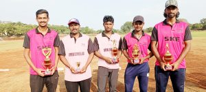 सामन्यानंतर प्रमुख पाहुणे आनंद सराफ, चंदन कुंदरनाड, आनंद करडी, गजानन जैनोजी, गजानन सिद्धलिंग, देवेंद्र कुडची, स्पर्धा सचिव अमरदीप पाटील आदी मान्यवरांच्या हस्ते वजेत्या जिमखाना, उपविजेत्या एसकेई संघला चषक देवून गौरविण्यात आले. अंतिम सामन्यातील ‘सामनावीर’ मनोज पाटील जिमखाना, उत्कृष्ट फलंदाज वैभव कुरुबागी-जिमखाना, उकृष्ट गोलंदाज गौरव तेलंजी-एसकेई, इम्पॅक्ट खेळाडू अशोक सिंग-एसकेई, ‘मालिकावीर’ पार्थ नयनी-एसकेई यांना चषक देवून गौरविण्यात आले. अंतिम सामन्यासाठी पंच म्हणून तेजस पवार, संदीप मुरारी, शेहजाद यांनी काम पाहिले तर स्पर्धेसाठी अनंत, जयेश,शुभम यांनी विशेष परिश्रम घेतले.