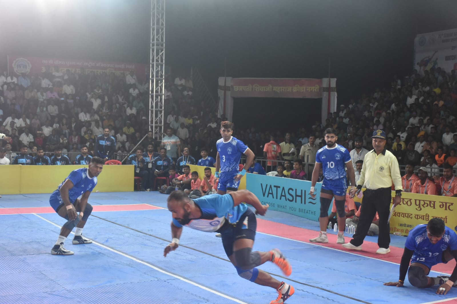 महाराष्ट्राने आज आपल्या लौकिकाला साजेसा खेळ करीत विदर्भचा 48-24 असा पराभव करीत उपांत्यपूर्व फेरी गाठली. उपांत्यपूर्व फेरीत त्यांची लढत कर्नाटक संघाशी होईल. कप्तान असलमने सामन्याच्या पहिल्याच चढाईत गुण घेत महाराष्ट्राचा इरादा स्पष्ट केला. 8व्या मिनिटाला लोण देत महाराष्ट्राने 11-03 अशी आघाडी घेतली. पुन्हा दुसरा लोण देत ही आघाडी 26- 06 अशी वाढविली. पहिल्या डावात 29-08 अशी महाराष्ट्राकडे आघाडी होती. उत्तरार्धात महाराष्ट्राने 3 अव्वल पकड करीत आपला बचाव देखील भक्कम आहे हे दाखवून दिले.