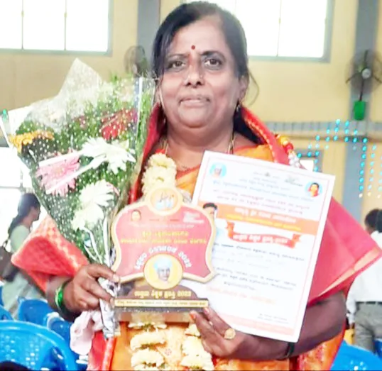 अगसगे : सरस्वती हायस्कूल हंदिगनूरच्या शिक्षिका व्ही. बी. भोसले यांना तालुकास्तरीय आदर्श शिक्षिका म्हणून सन्मानित करण्यात आले.