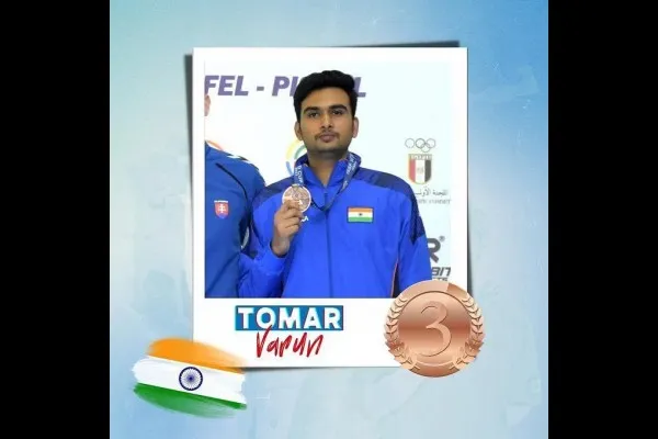 आंतरराष्ट्रीय नेमबाजी फेडरेशनच्या येथे रविवारपासून सुरू झालेल्या 2023 च्या विश्वचषक रायफल आणि पिस्तुल नेमबाजी स्पर्धेत नेमबाज वरुण तोमरने पदक तक्त्यात भारताचे खाते उघडताना 10 मीटर एअर रायफल नेमबाजीत कांस्यपदक मिळविले.