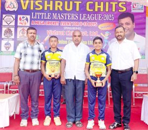 बेळगाव : युनियन जिमखाना आयोजित चंदन कुंदरनाड पुरस्कृत 13 वर्षाखालील मुलांच्या विश्रुत चिट्स लिटिल मास्टर्स क्रिकेट स्पर्धेत शुक्रवारी झालेल्या सामन्यात जेवर गॅलरी डायमंड तर साई फार्म स्पोर्ट्स क्लब संघाने कार एंटरप्राइजेस सुपर ओव्हर मध्ये बाजी प्रत्येकी एक 2 गुण मिळविला. युनियन जिमखाना आजच्या पहिल्या सामन्यात जेवर गॅलरी डायमंड संघाने साईराज वॉरियर्स पालेकर अकादमी संघाचा 53 धावांनी पराभव केला. जेवर गॅलरी डायमंड संघाने नाणेफेक जिंकून प्रथम फलंदाजी करताना 25 षटकात 5 बाद 157 धावा केल्या.