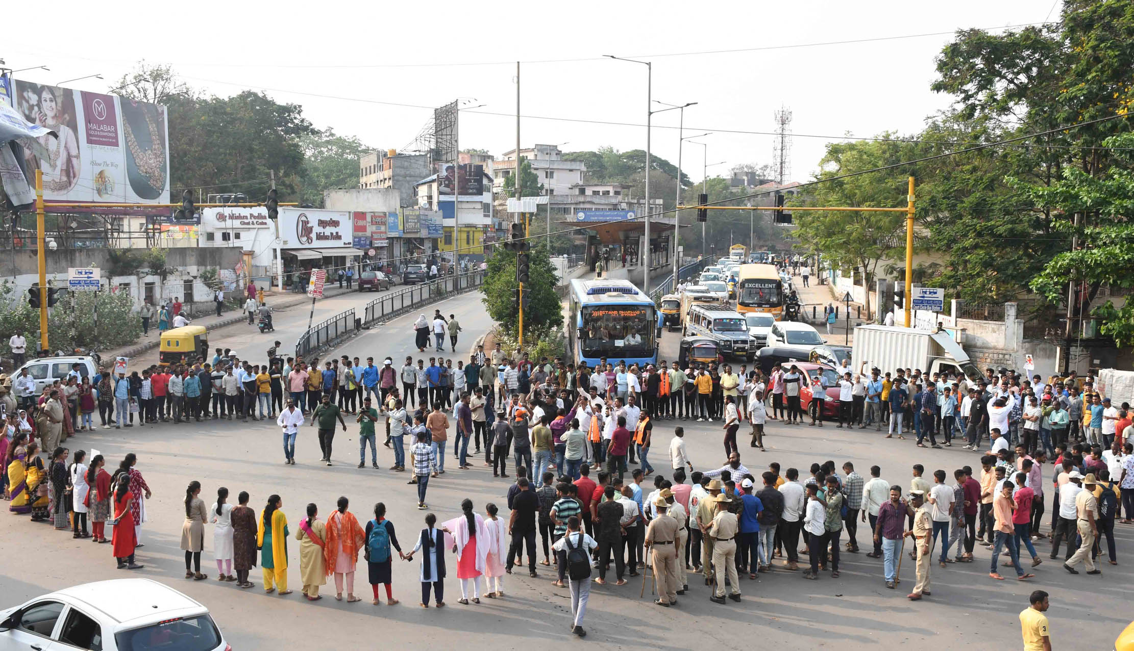 प्रेमाचा प्रस्ताव धुडकावल्याने महाविद्यालयीन युवतीची त्याच महाविद्यालयात शिकणाऱ्या युवकाने निर्घृण खून केल्याची घटना गुरुवारी हुबळीतील बीव्हीबी महाविद्यालयात घडली होती. या घटनेच्या निषेधार्थ अखिल भारतीय विद्यार्थी परिषदेच्या कार्यकर्त्यांसह अनेक संघटनांनी हुबळीत तीव्र आंदोलन छेडले. खून करणारा आरोपी फैयाजला कठोर शिक्षा करावी, अशी मागणी केली आहे.