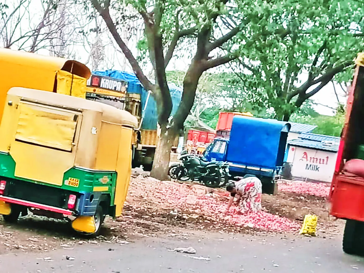 बेळगाव कृषी उत्पन्न बाजार समितीमध्ये महाराष्ट्रामधून मोठ्या प्रमाणात कांदा आवक होत आहे. मात्र ज्या ठिकाणाहून कांदा आवक होत आहे त्या परिसरामध्ये मोठ्या प्रमाणात अवकाळी पावसाने धुमाकूळ घातला होता. याचा परिणाम अर्ध्याहून अर्धा कांदा भिजला आहे. शेतकरी बांधवांनी जरी भिजलेला कांदा वाळवून बाजारात विक्रीसाठी आणला तरी मोठ्या प्रमाणात कांदा कुजण्याचे प्रमाण वाढत.s त्यामुळे कुजलेला कांदा फेकून दिला आहे. त्याचे ढीग परिसरामध्ये पसरलेले आहेत.
